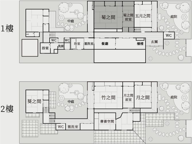 以拉門隔開3張半塌塌米大小的前室(前)以及10張塌塌米大小的空間(後)。