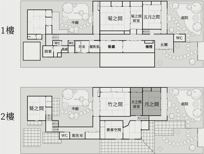 館內有「檜葉之木風呂」和「洋風風呂」兩處共用風呂。木風呂使用了高野槙,香氣芬芳,洗後肌膚觸感柔潤。