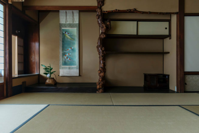 NHKの美術番組「美の壺」でも紹介された、個性的な洒落木の床柱が特徴です。