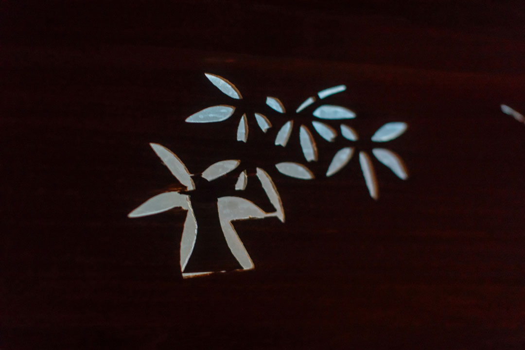 書院の欄間には、部屋名の由来となる笹の模様が施されています。